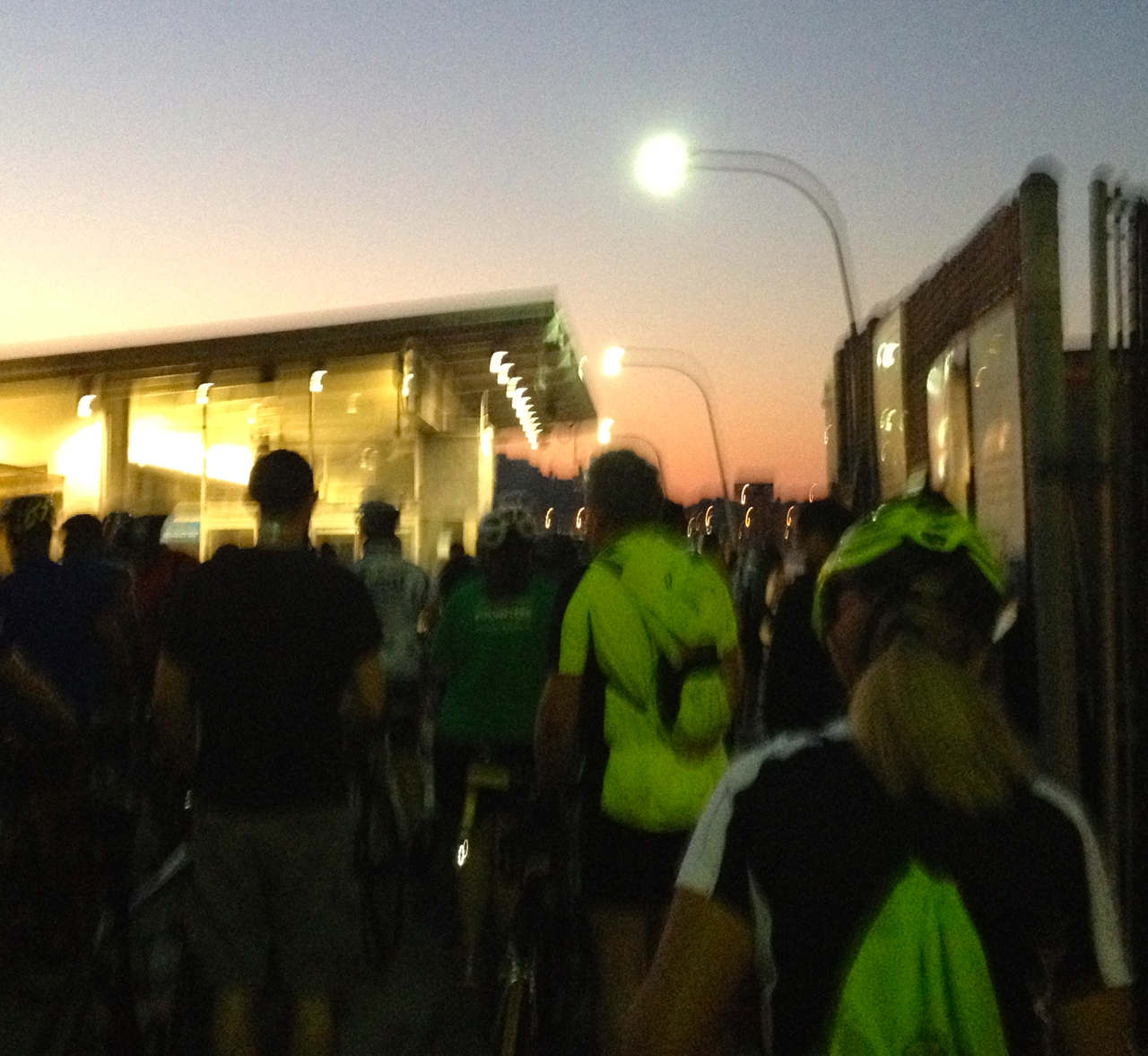The break gave me a chance to look over Abel’s intriguing bike. At just 17 pounds, it can go anywhere. I took a brief spin; it’s fun to ride, although the light weight and little wheels feel odd. (So did the Brompton when I first tried it.) Abel did 55 miles on this contraption, wearing ankle weights! Astonishing.