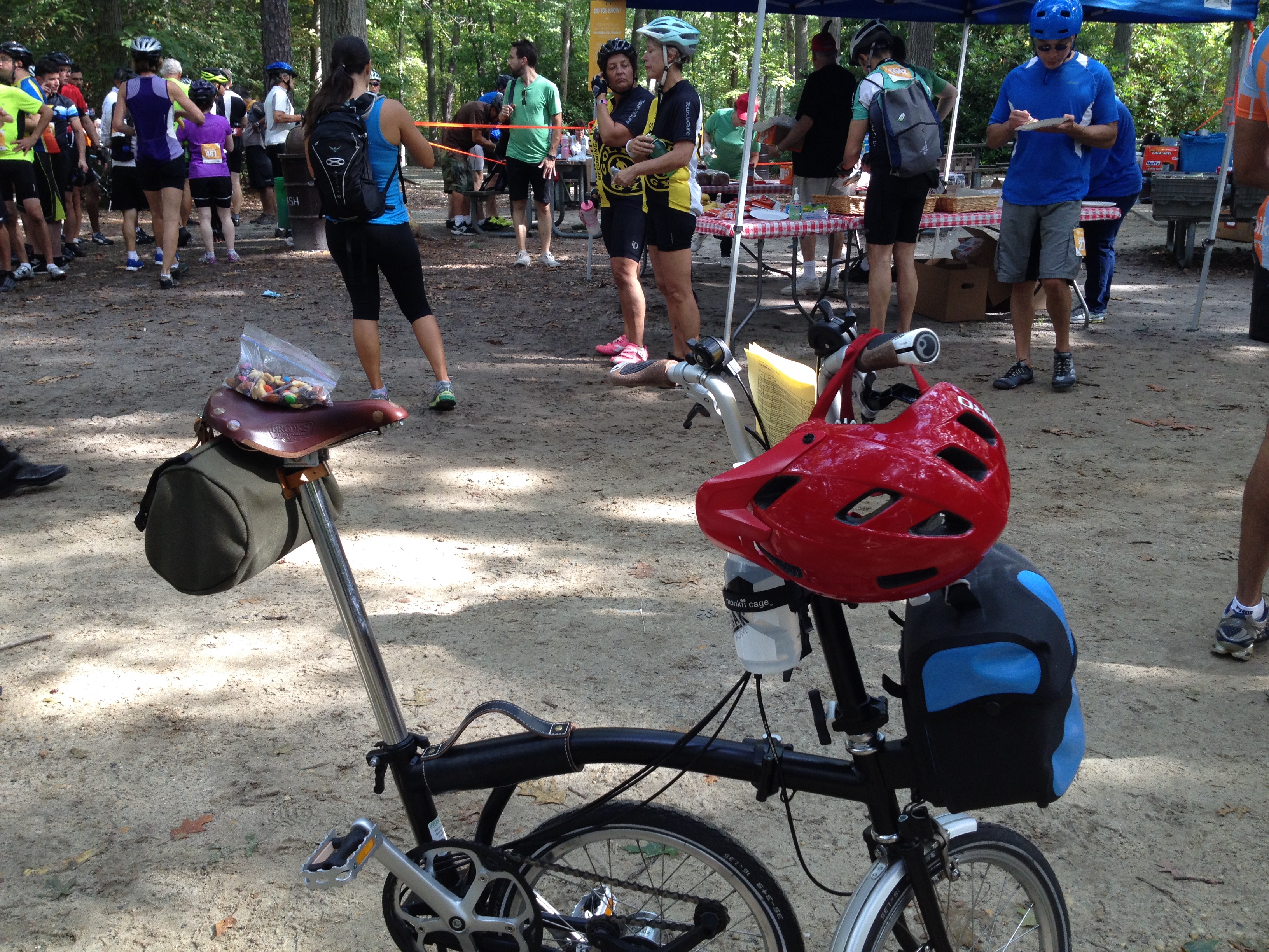 Here I learned the day’s most important lesson: A folded Brompton fits neatly, if snugly, inside a port-a-potty.